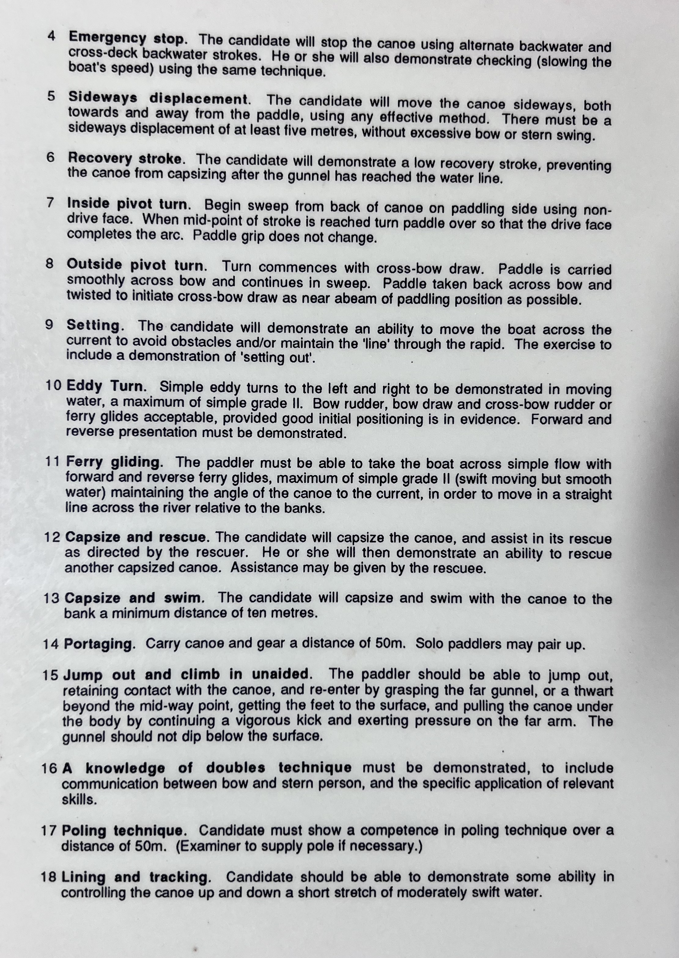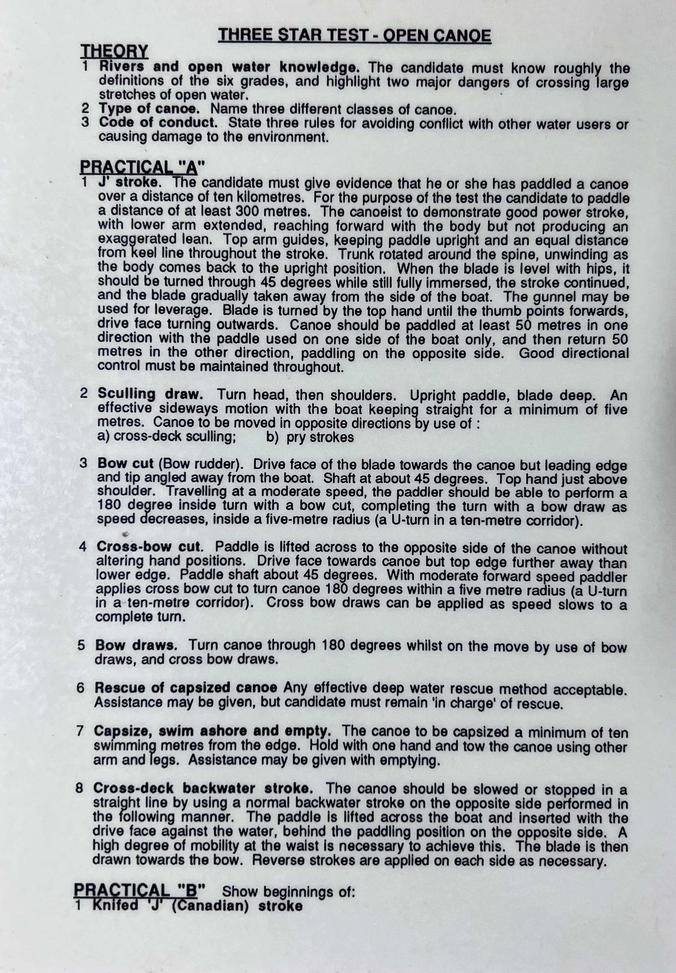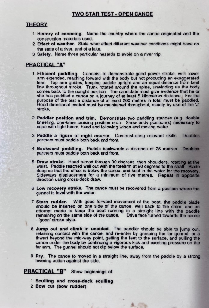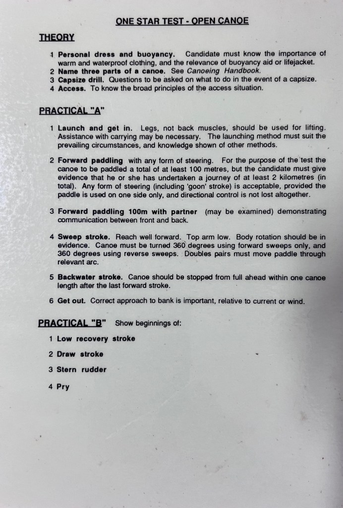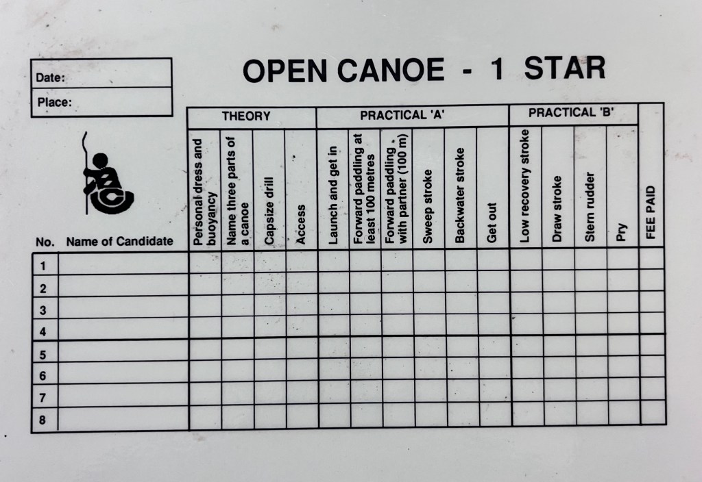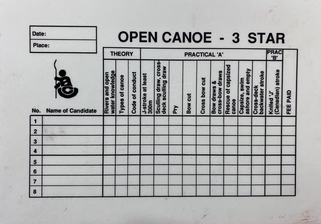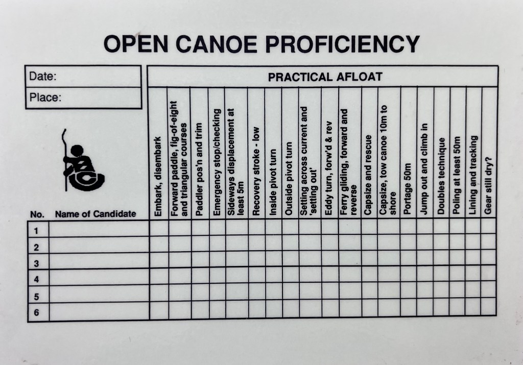 The old awards was broken down into progressive skills awards – 1 Star, 2 Star and 3 Star – and a broader Open Canoe Proficiency award covering broader skills, gear, group skills etc.