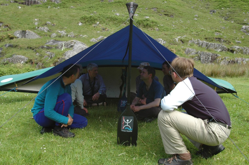 The location of the tarp is the first consideration when it comes to pitching shelters and it must have pride of place, as a group shelter as everyone will be using it. So, the leader will decree “That is where the tarp is going” and dump the Wanigan (the expedition cook’s box) on that spot.